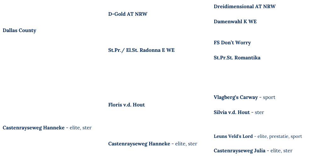 Steerwolde’s Maeve Geboren: 2025 Resultaat: 2025 1A +CK en Reserve Veulenkampioen RK Zuidenveld Pedigree Steerwolde’s Maeve